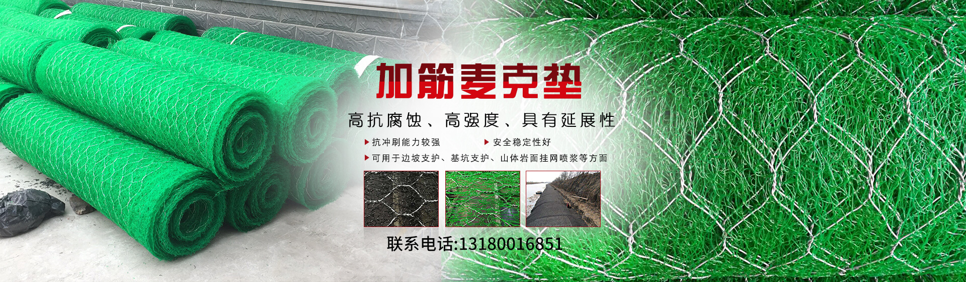 甘肅加筋麥克墊,熱鍍鋅加筋麥克墊,護(hù)坡加筋麥克墊,護(hù)河加筋麥克墊 加筋麥克墊是石籠網(wǎng)與麥克土工墊結(jié)合的土工材料,詢(xún)價(jià)咨詢(xún)需要提供加筋網(wǎng)的網(wǎng)絲粗細(xì),網(wǎng)絲的材質(zhì),有熱鍍鋅,高爾凡材質(zhì)。還有表...